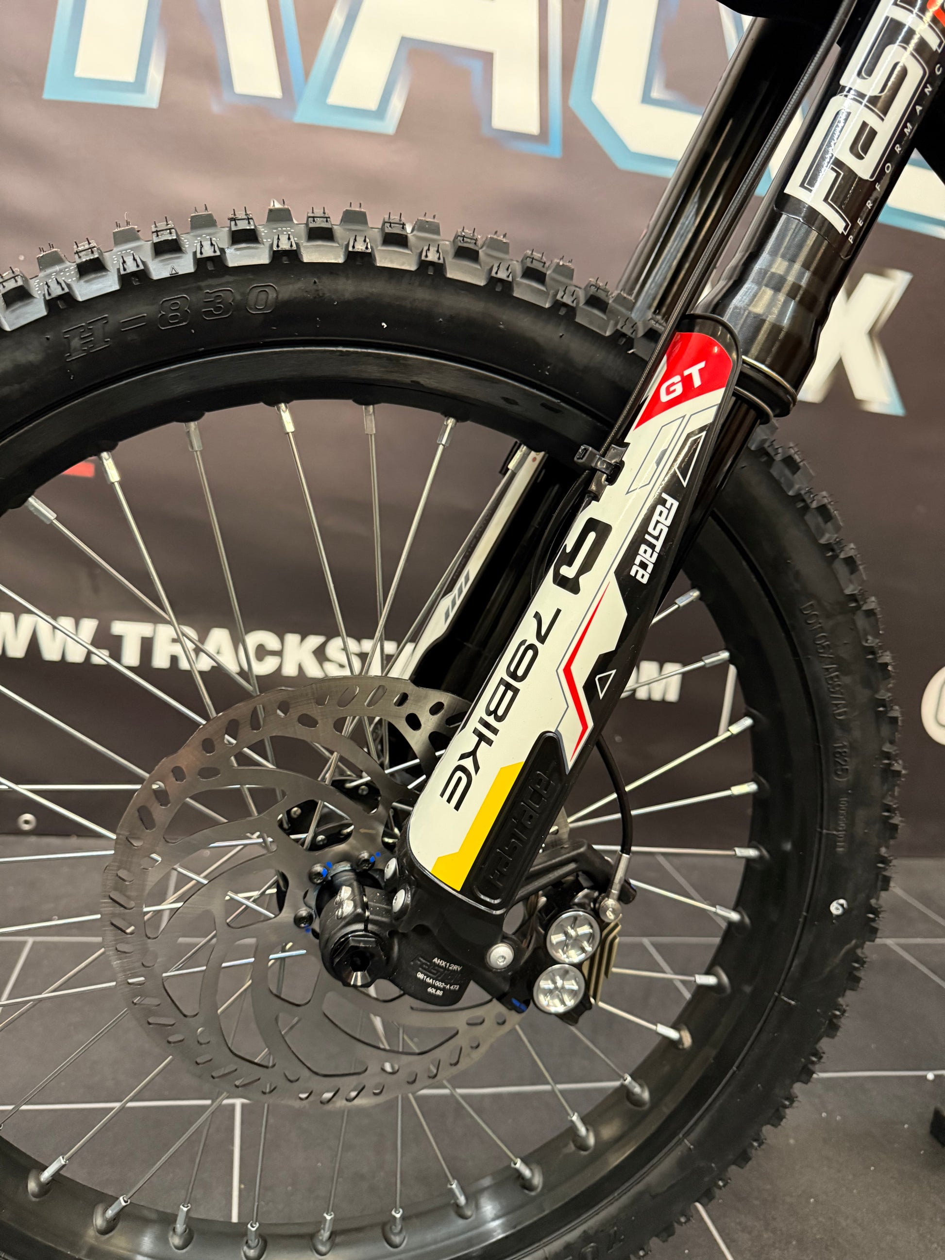 Fastace 2.0 inverted fork with full adjustability (preload, rebound, high and low-speed compression) lets you dial in the suspension for your weight and riding style. Lewis Racing-Grade 220mm discs with 2.8mm thickness give proper stopping power that won't fade.